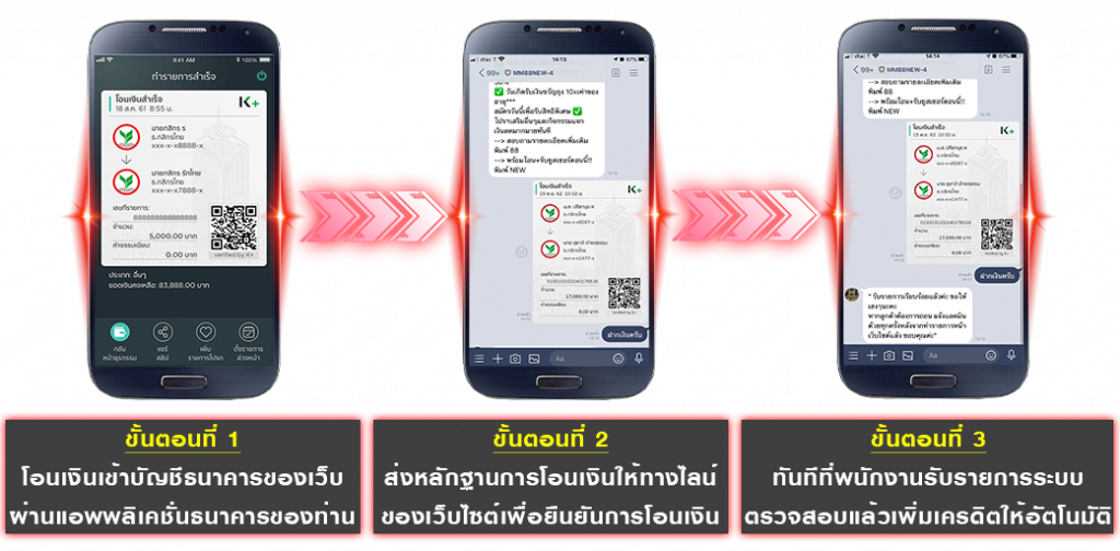 1. ส่งหลักฐานการโอนเงินให้ทางไลน์ของเว็บไซต์เพื่อยืนยันการโอนเงิน